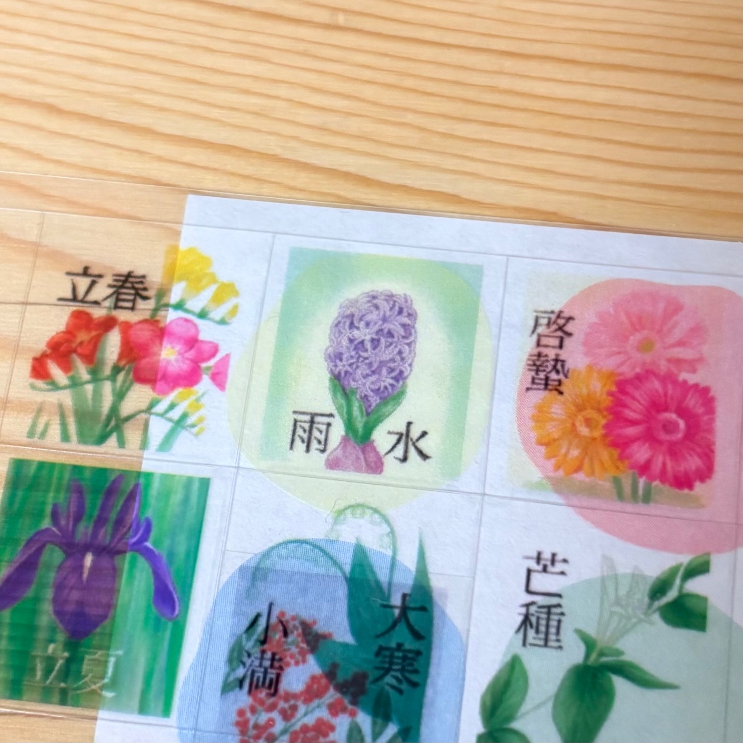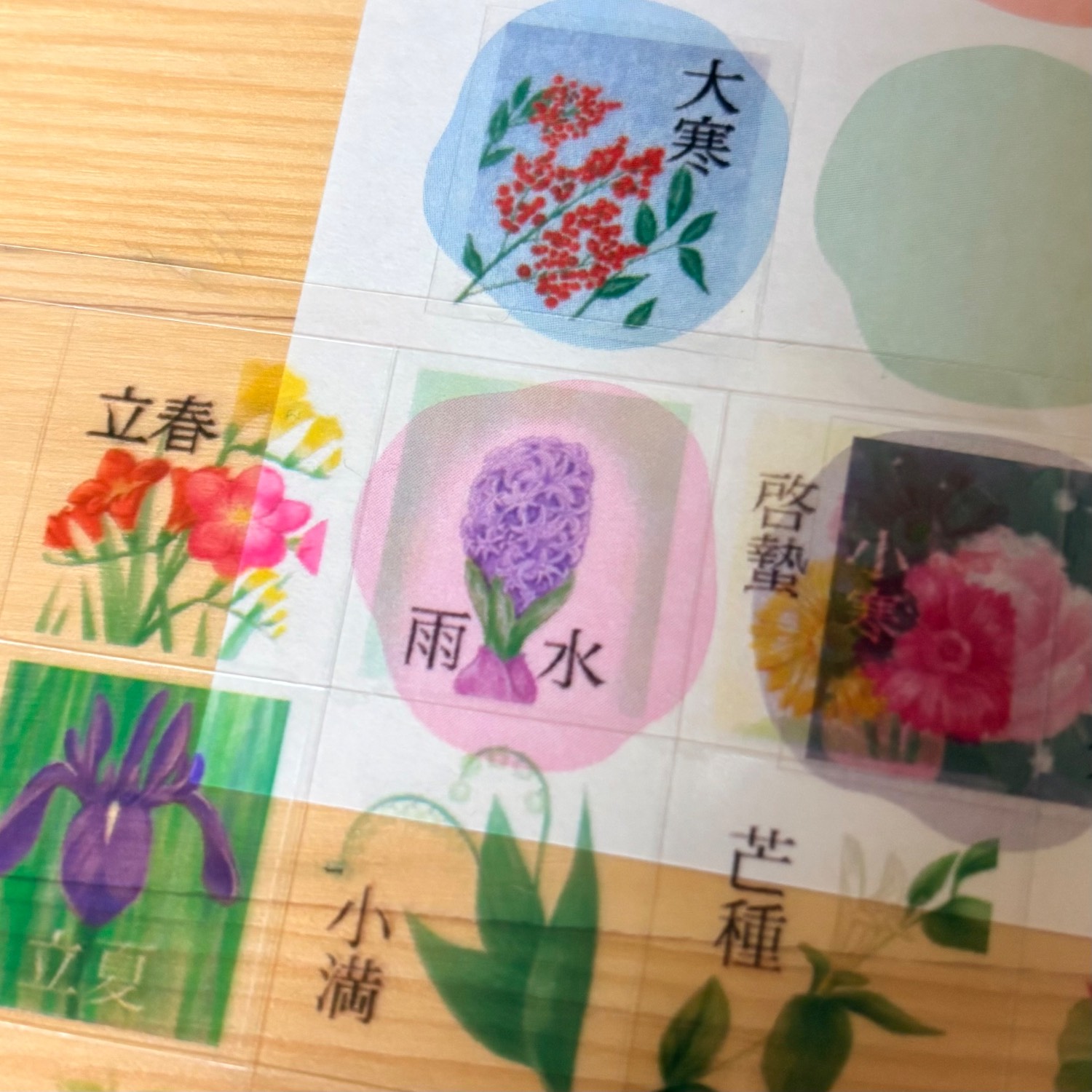 時間〈とき〉ラボのポイント特典でいただきました二十四節気シールをセリアで見つけた【トレーシングダイカットシール】に貼りました♪