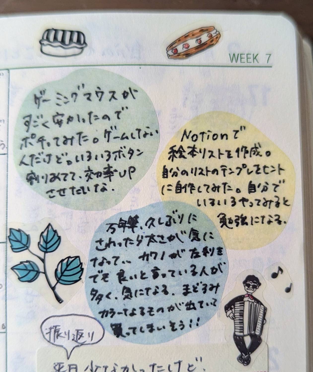 こんな感じで空いてるスペースに2.3枚貼って、1言書くっていうのをやってました!