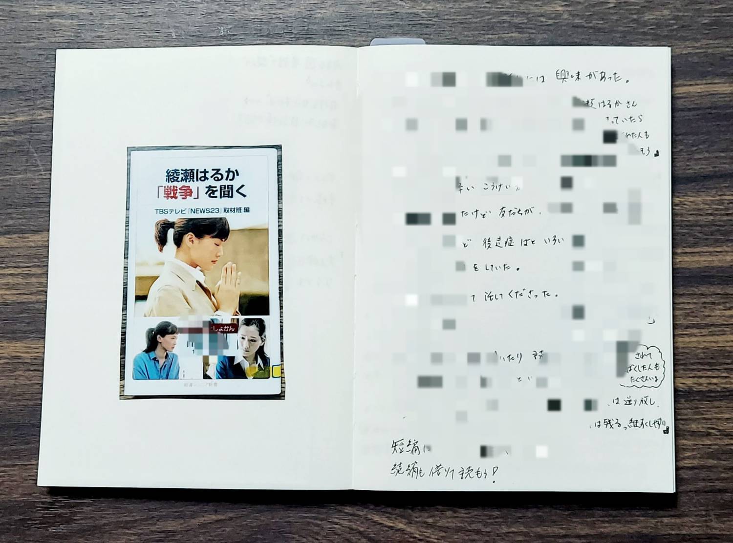 右ページには感想なりメモなりを書きます。