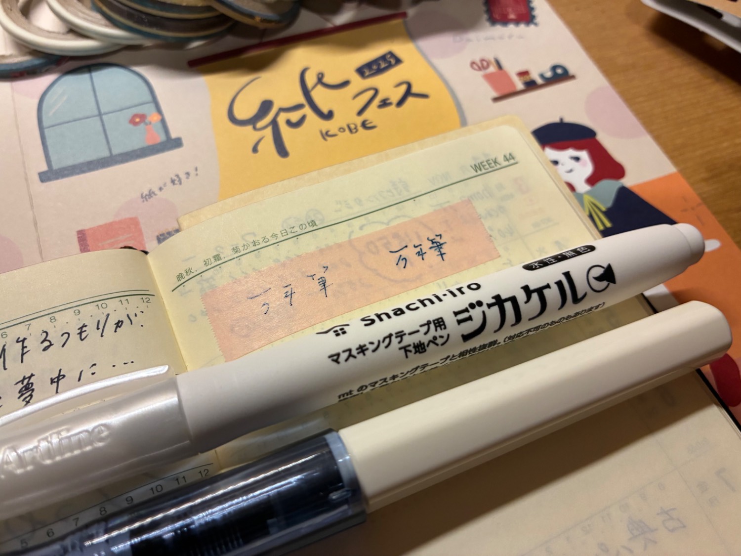 マスキングテープに塗ると、水彩ペンや万年筆でも書けるようになるとのこと。