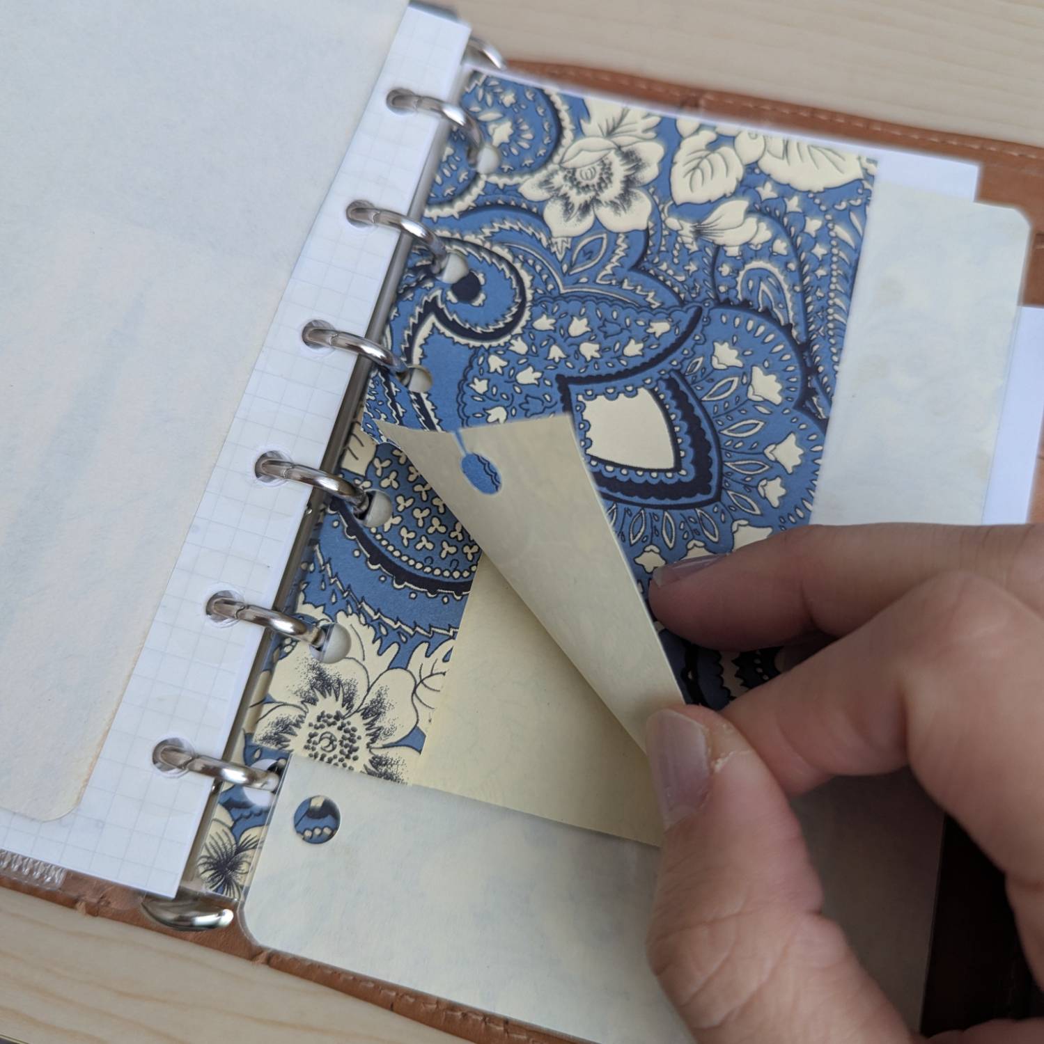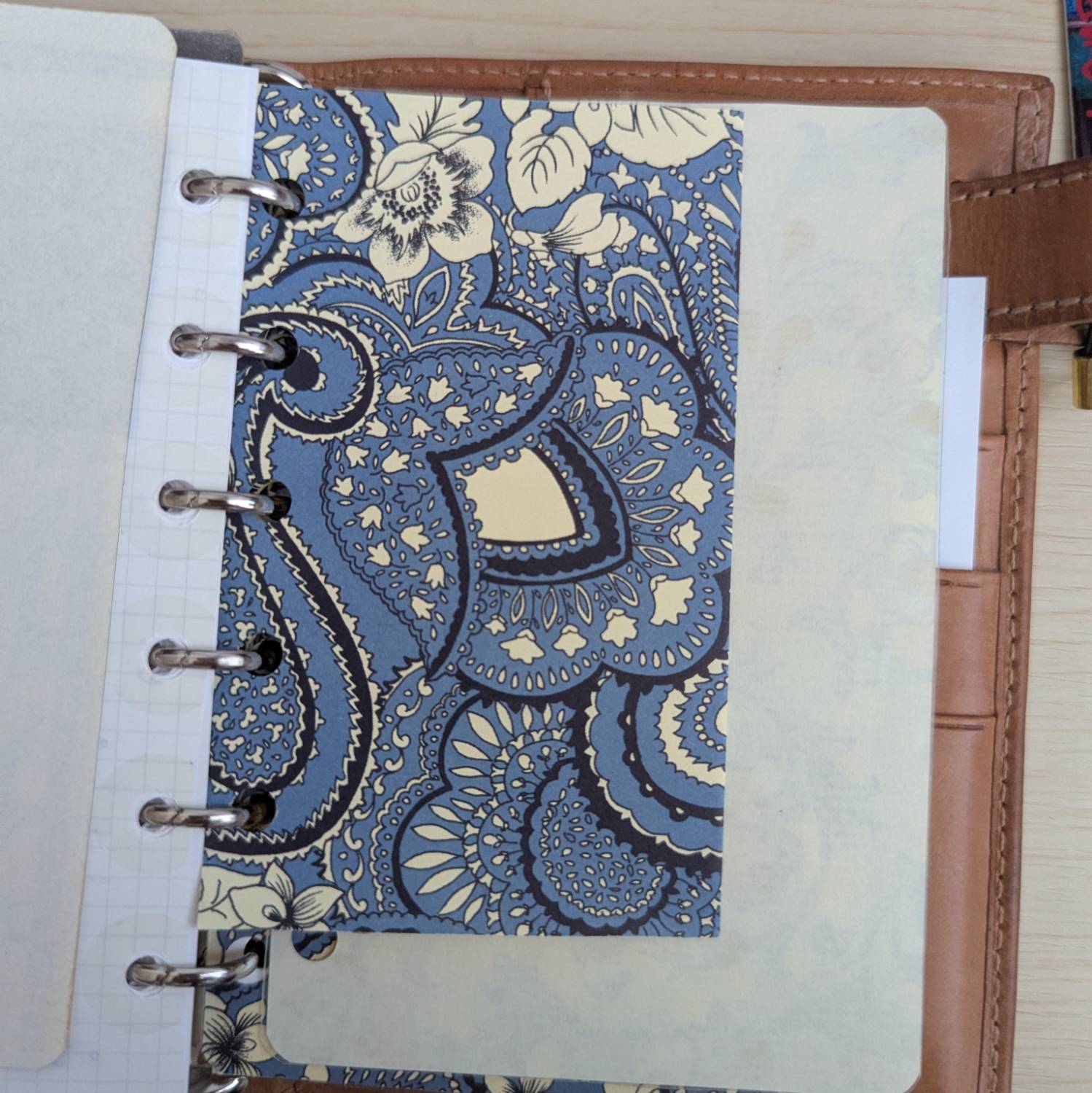こちらはミニ6ですがお気に入りのデザペを切って、ラミネートシートを貼り、ディバイダーにしています。