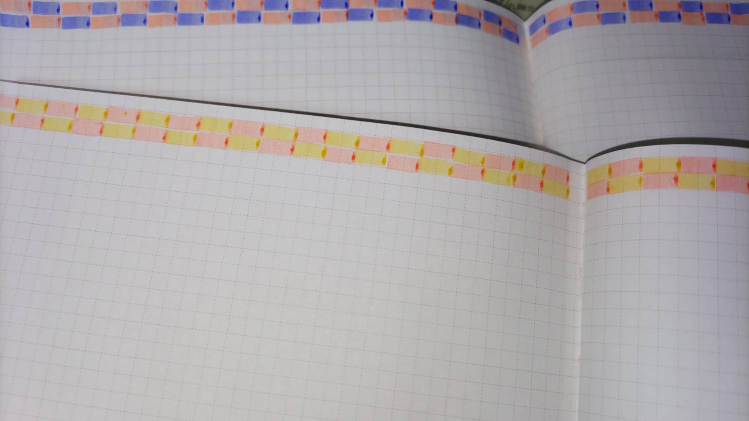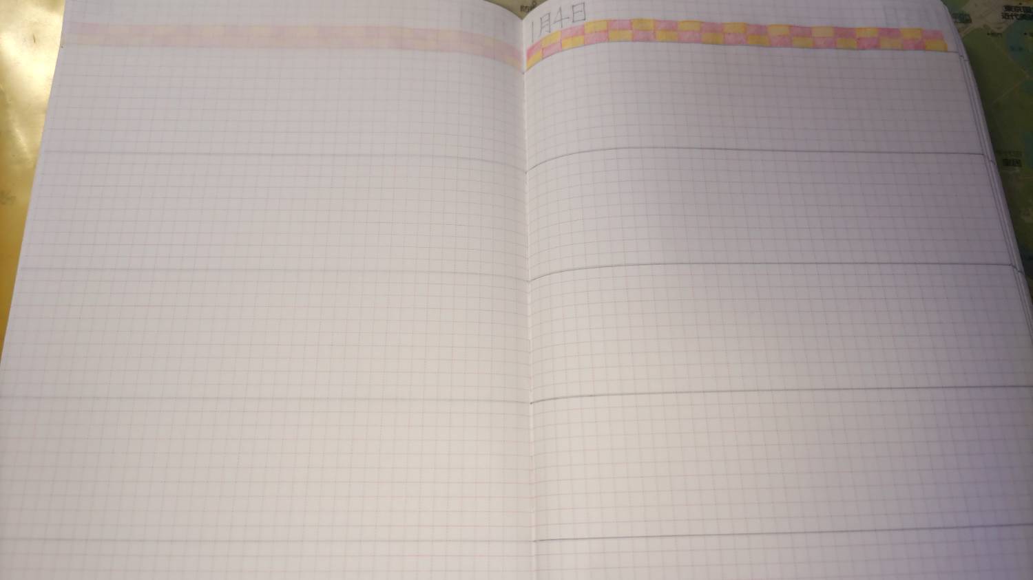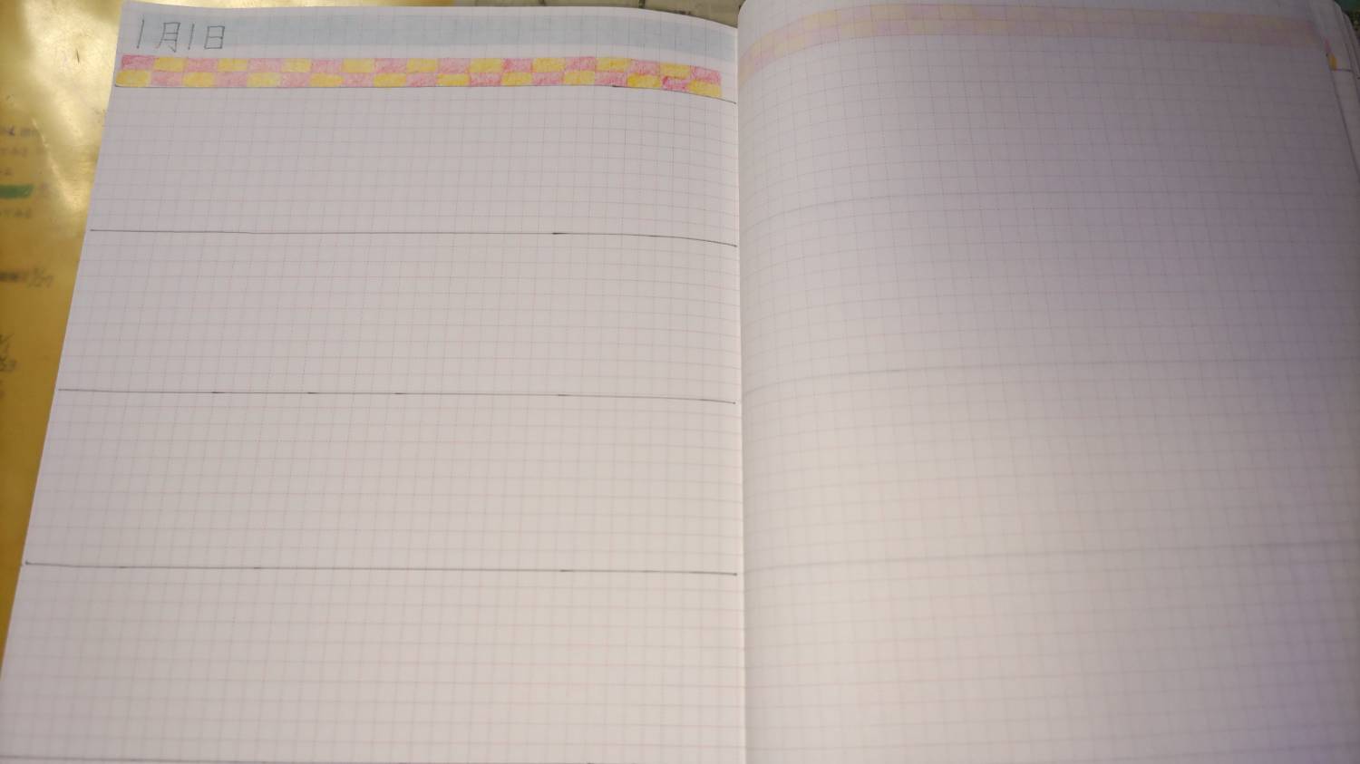 色鉛筆で日記ページの上の方にMonthly colorと方眼マスを利用したデコに仕掛中。