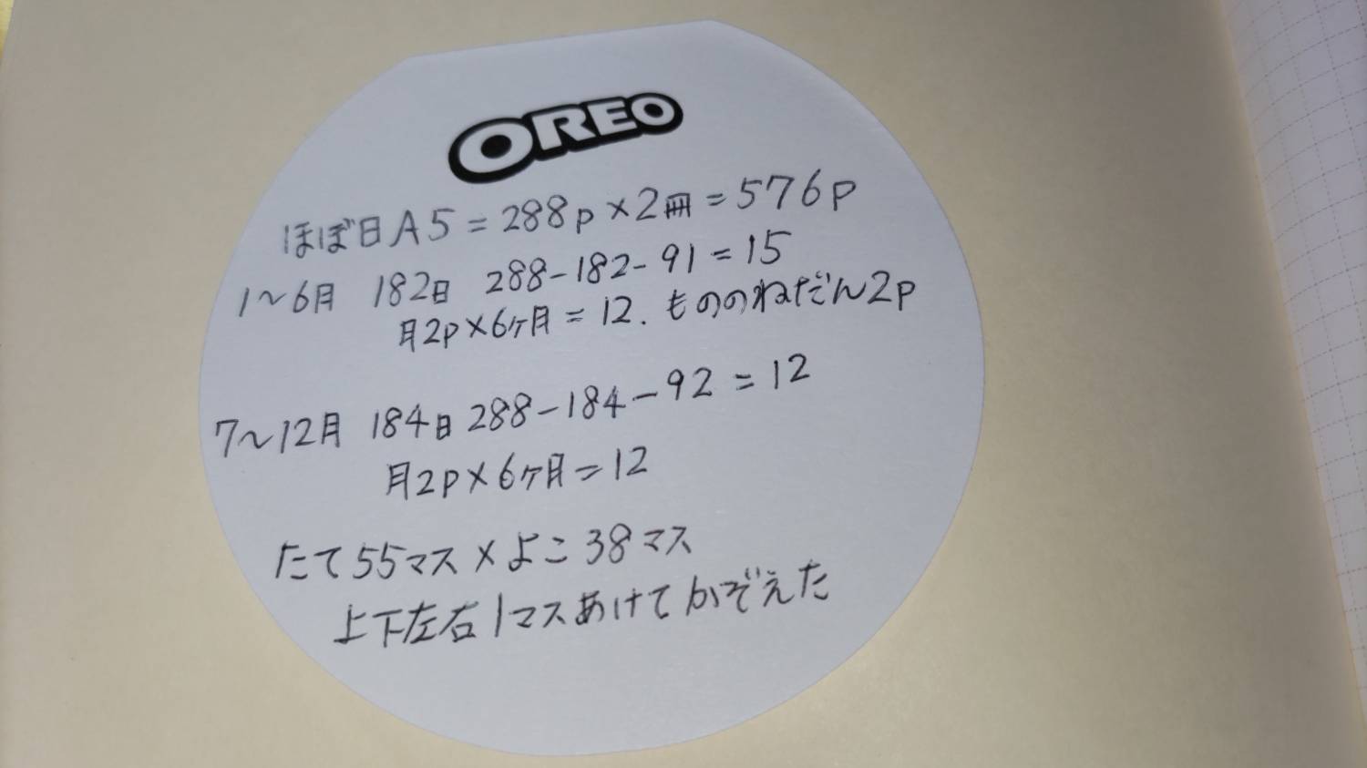 何かの時に…と買っておいたほぼ日方眼ノート(A5サイズ2冊)を使って
