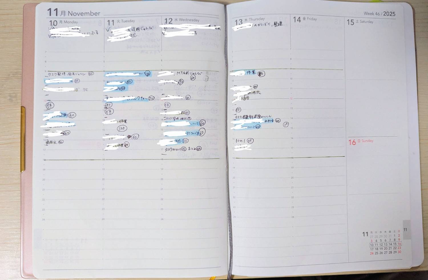 (職種柄タスクが細かすぎて手帳に書く時間やスペースが足りない&チーム共有のタスク管理やガントチャートのファイルがあり、それを基準に業務にあたるため)