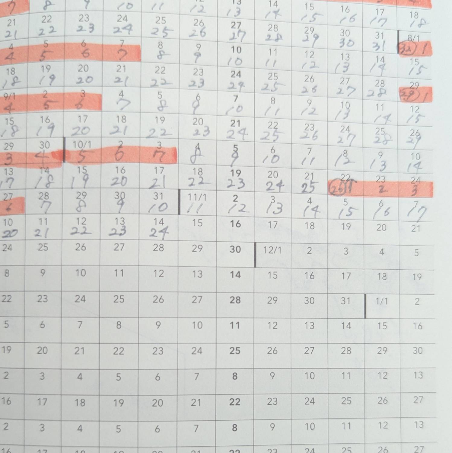 後ろの素敵なページたちはまだ本格始動していませんが、Health Check Calendarは生理カレンダーに使っています。俯瞰して1目で見られるのが結構良くて、来年も引き続きこの使い方で行きます。