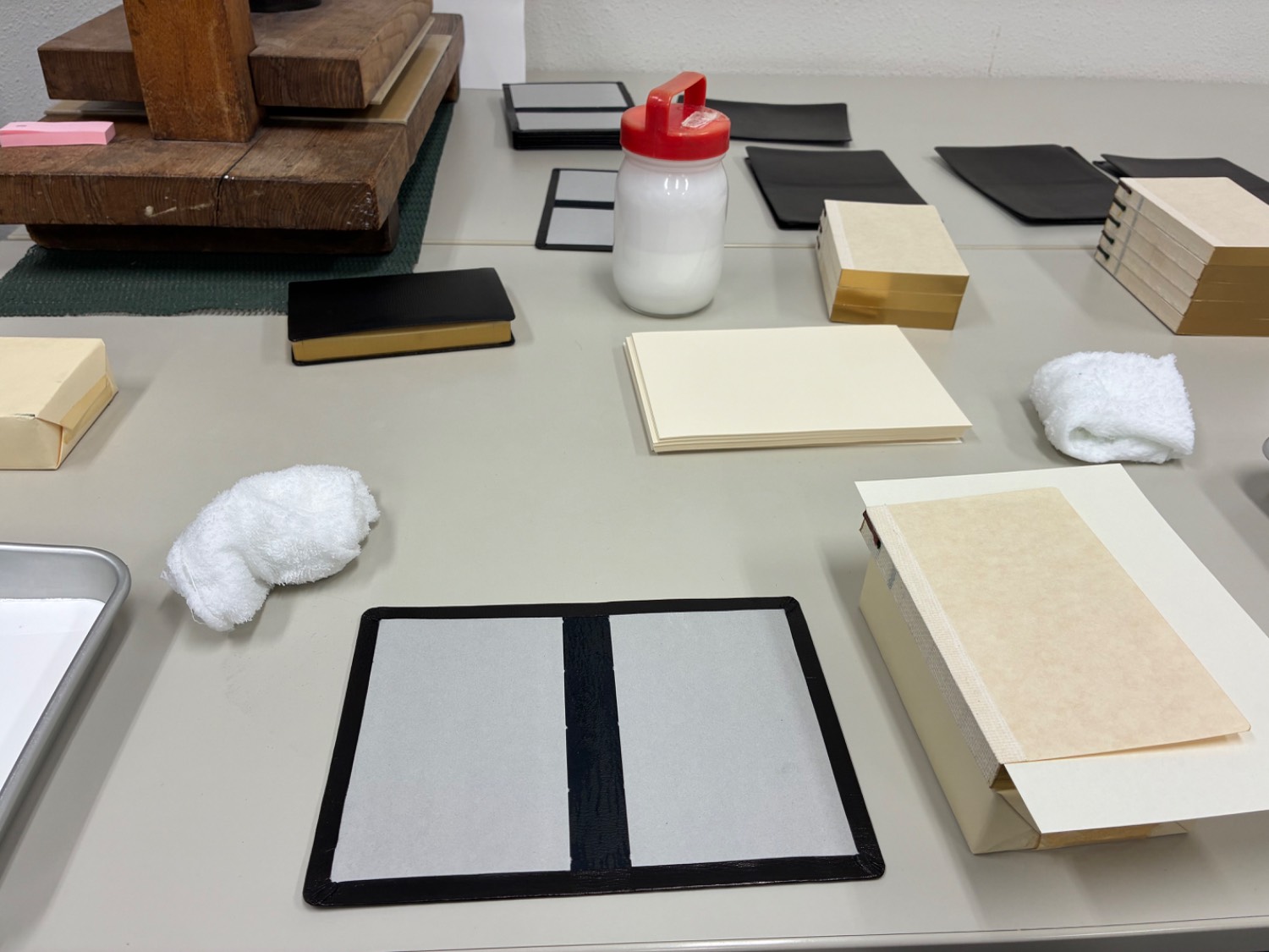 本体と表紙を貼り合わせる、そのひとつの工程だけでも手がぷるぷる、緊張の一瞬でした。