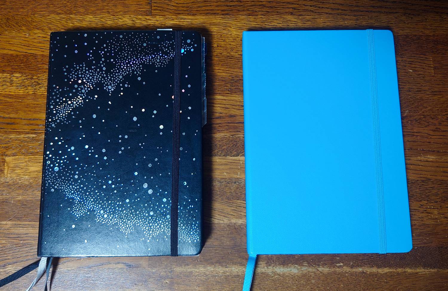仕事2の管理はTouch&FlowのB6無罫ノート(厚い)と横罫ノート(薄い)の2冊差しになりました。年をまたいで参照する情報を厚いノートに,今年限りの情報を薄いノートに書いています。他人の個人情報を必要以上に持ち歩きたくないので,個別具体的な情報は薄いノートにしか書いていません。