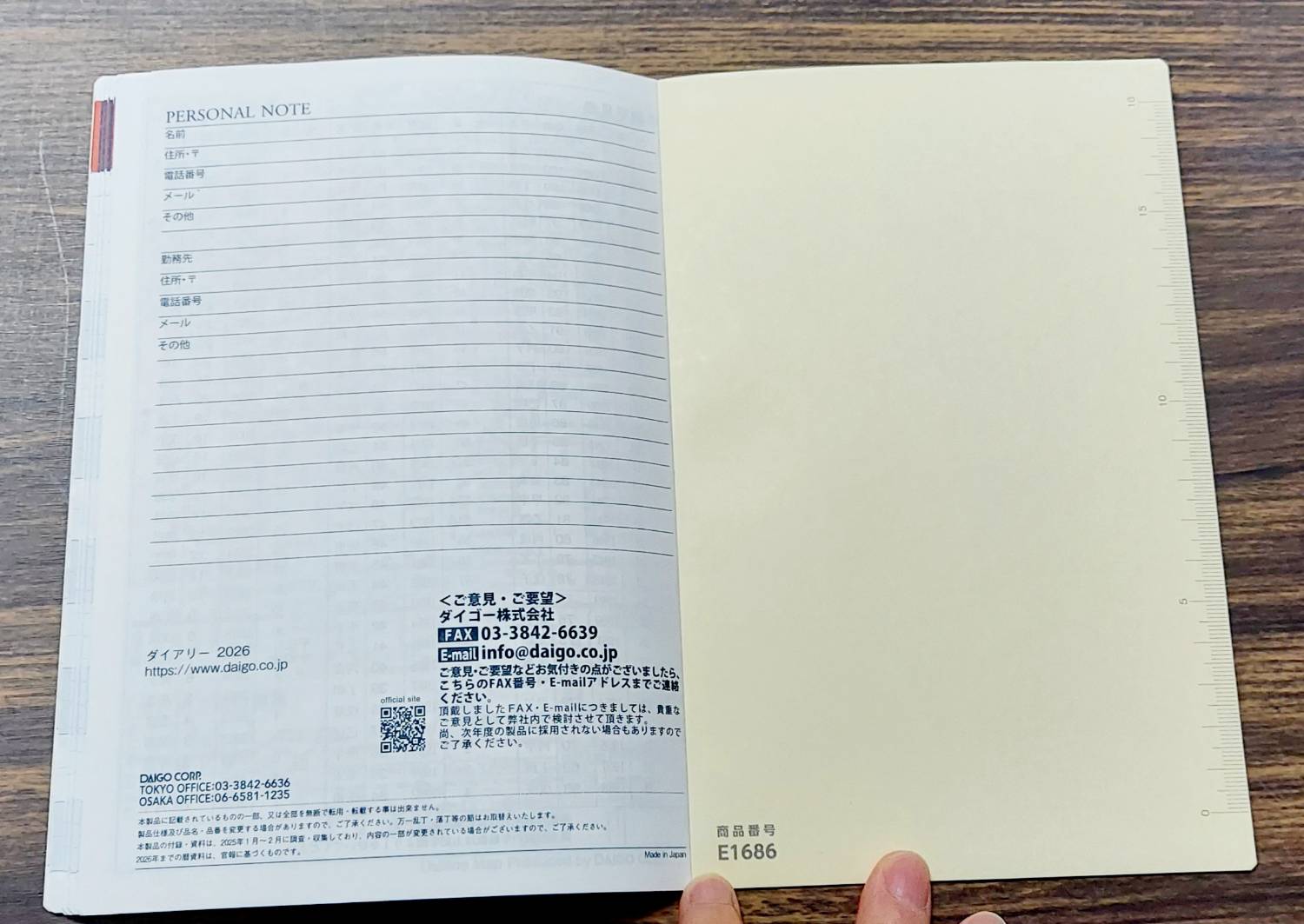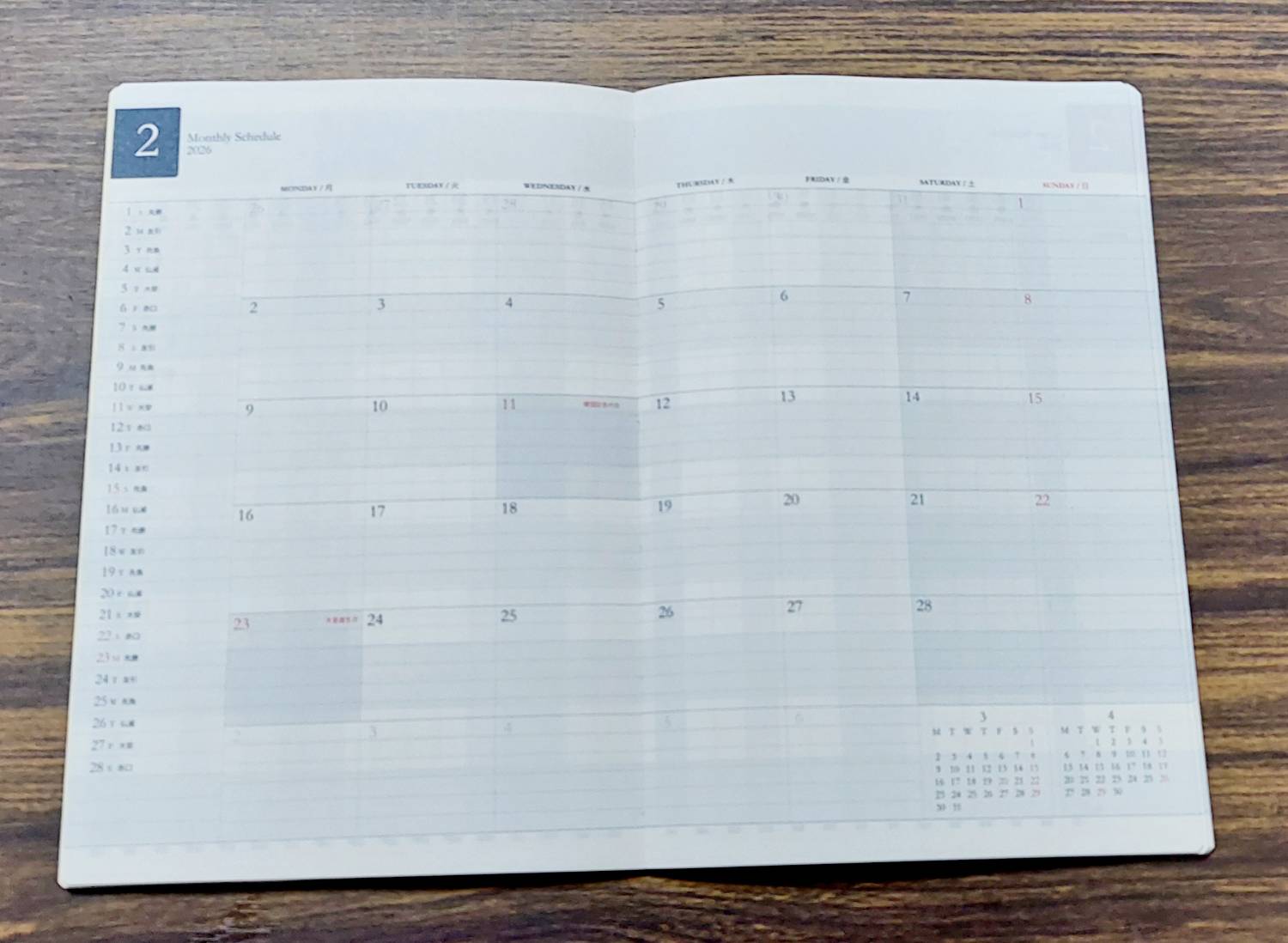 カレンダー部分は、6行になってます。この部分にダイエットの3行日記を書いてます。(反省とか)