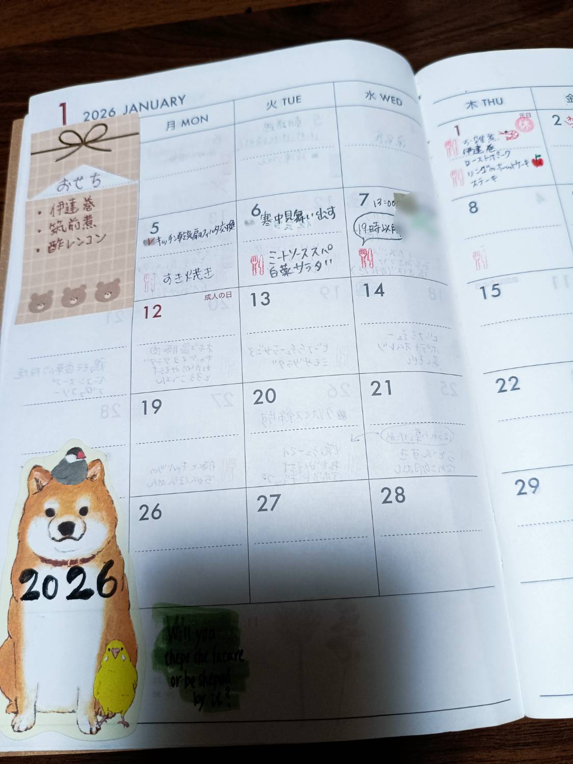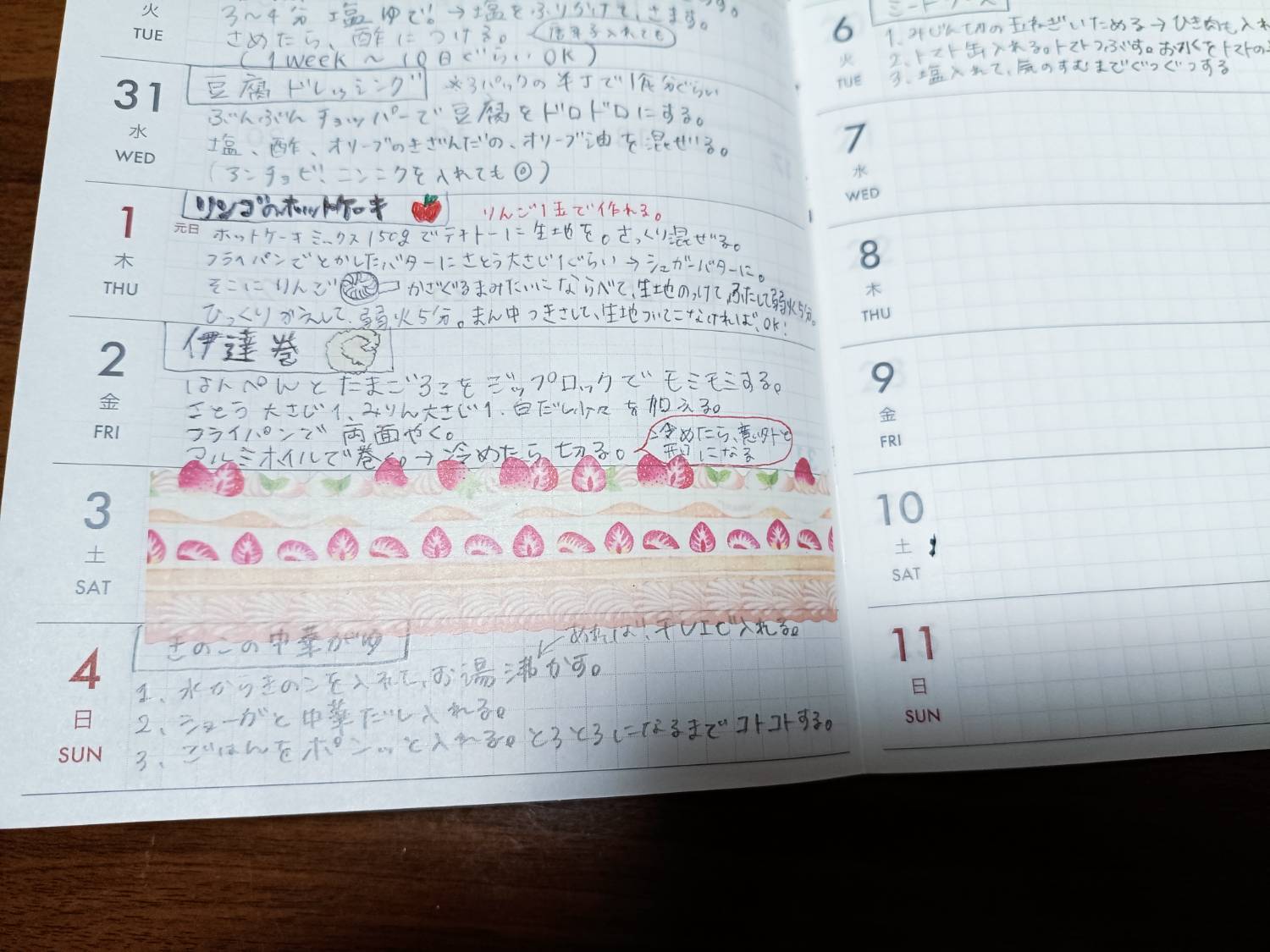 マンスリーには、家族で食べた夕食メニューや家事タスクを書いています。