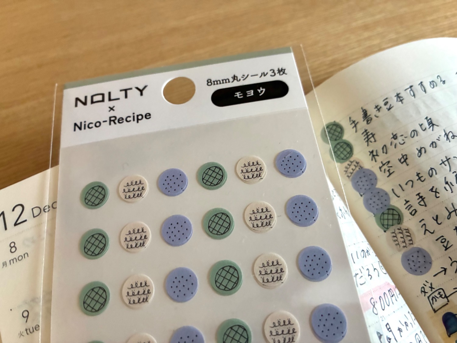入ってたいろんなシールたちは、エモジさんで作った文具ノートに見本をペタペタ。