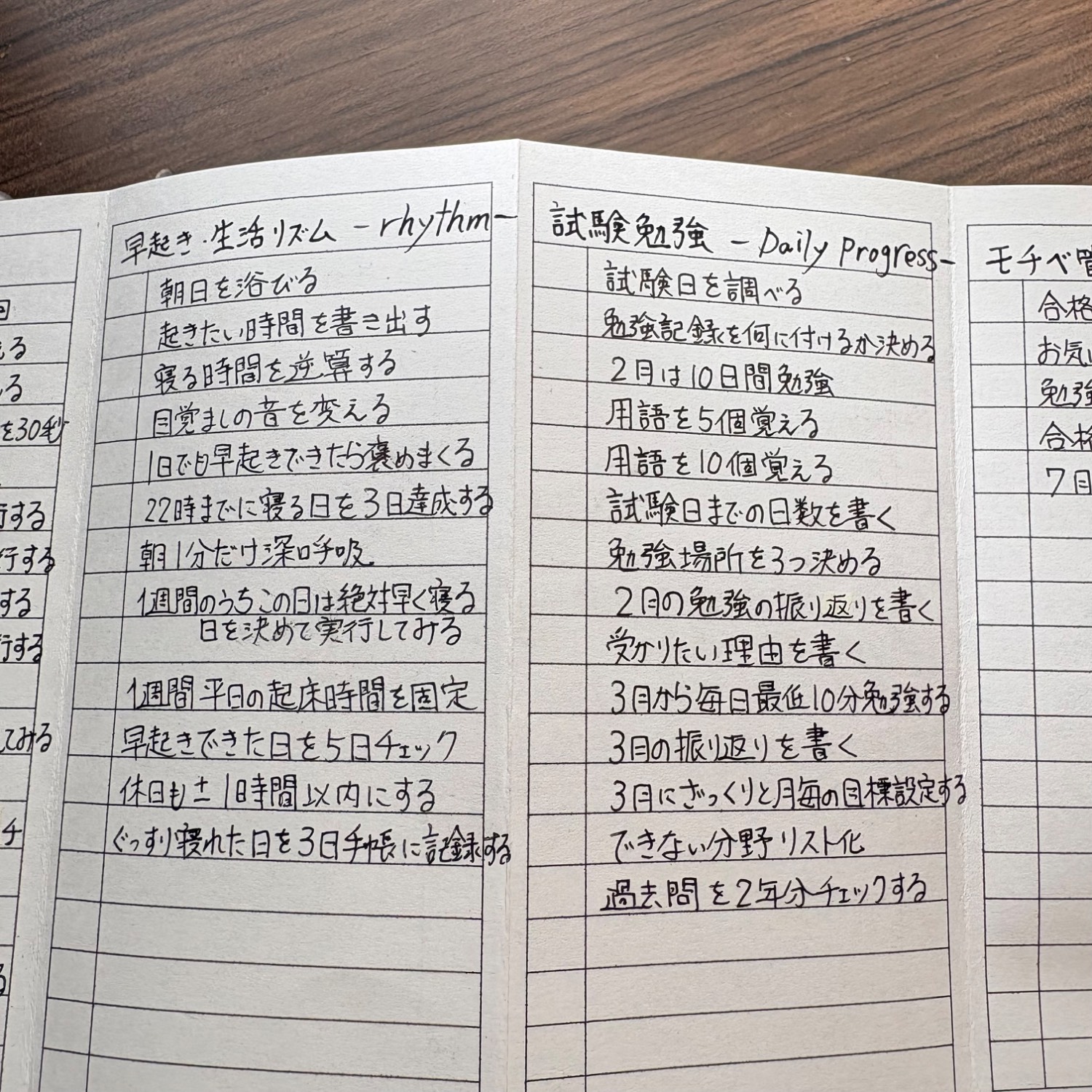 わたしなりに、より達成感を感じる内容にしようと検討した結果がこんな感じです。