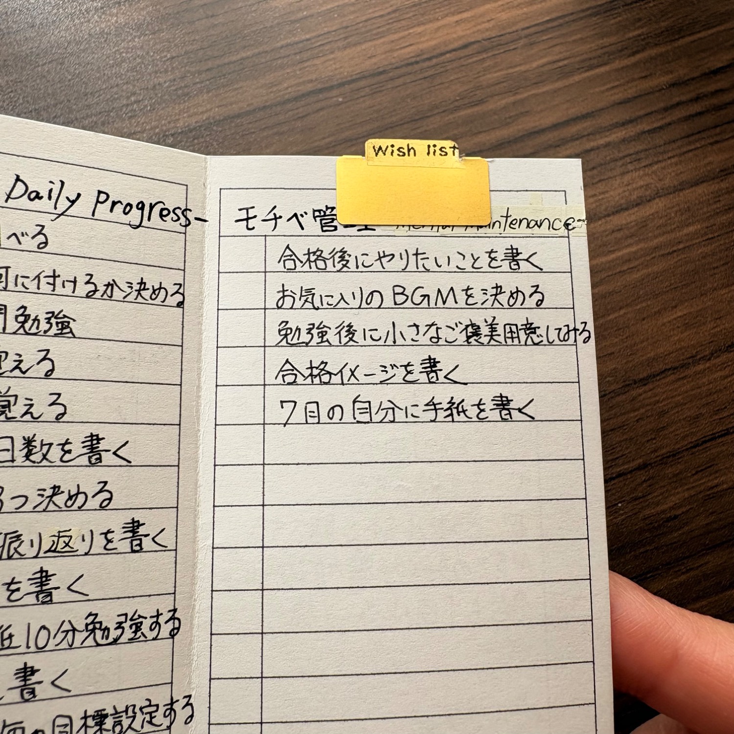 全部で10タイトルに分類し、そのうちひとつだけ『自由枠』という名前でワクワクすることを書きました✍︎