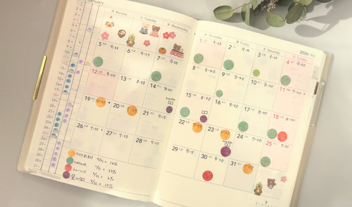 エクリPlusは左側の縦マンスリーあるのがいいですねー!