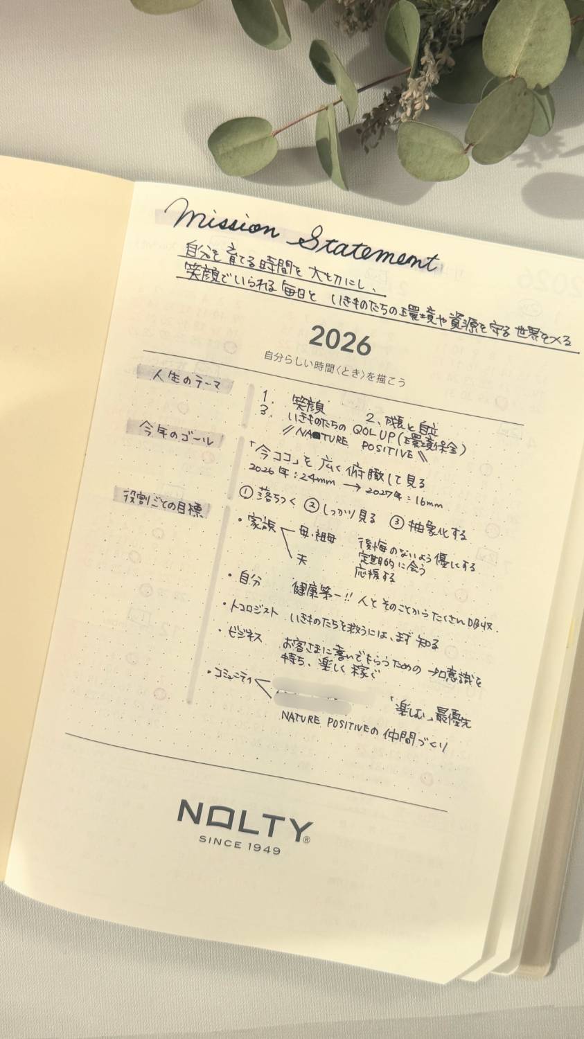 いちばん最初のページには、人生のテーマや今年の目標を。