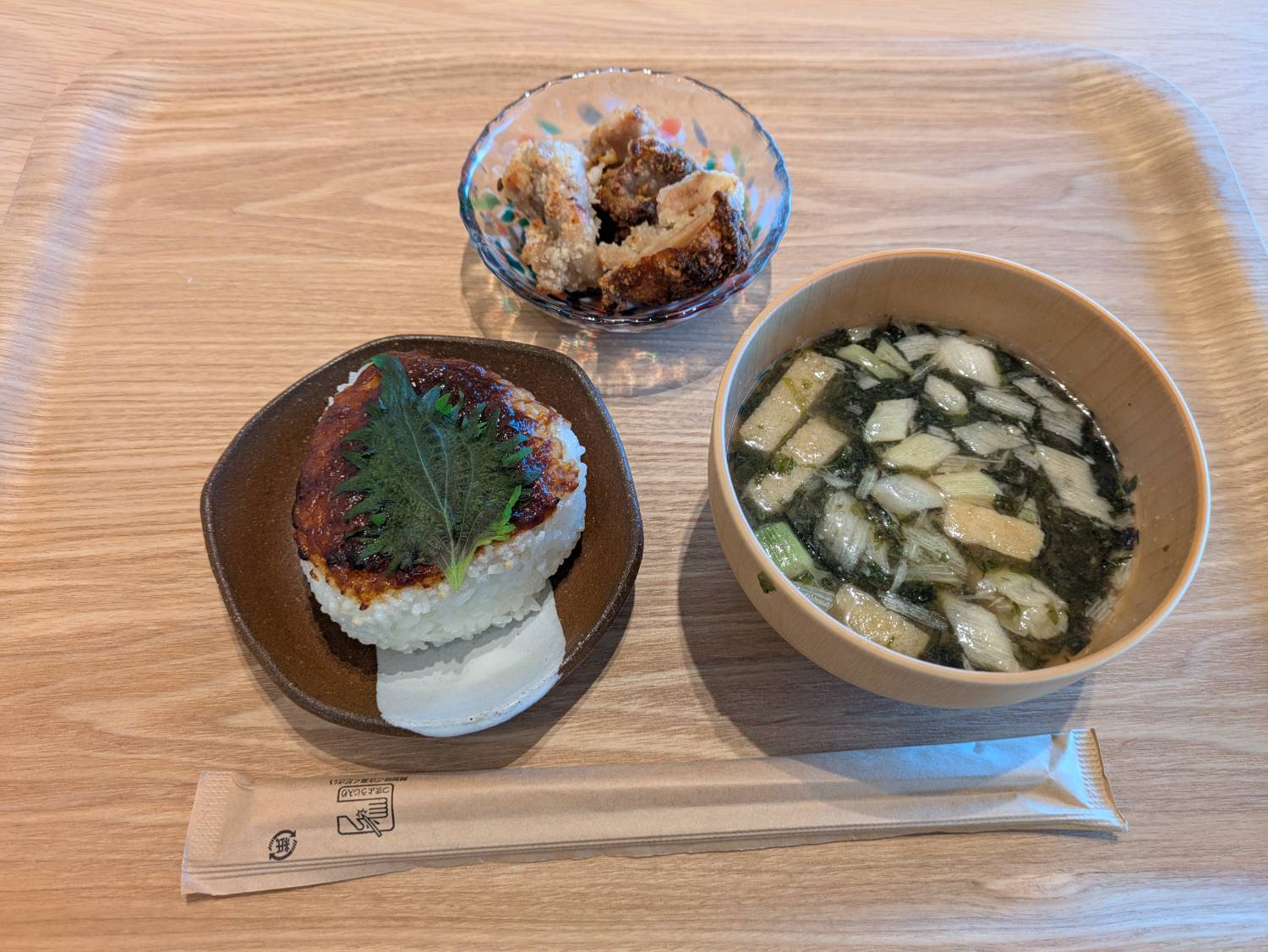 おかか味噌と大葉の焼きおにぎりと、塩糀の揚げない唐揚げ
