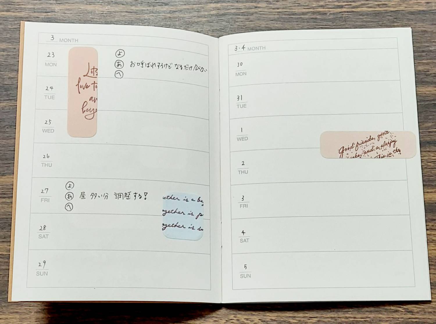 日付なしのマンスリー、ウィークリーも