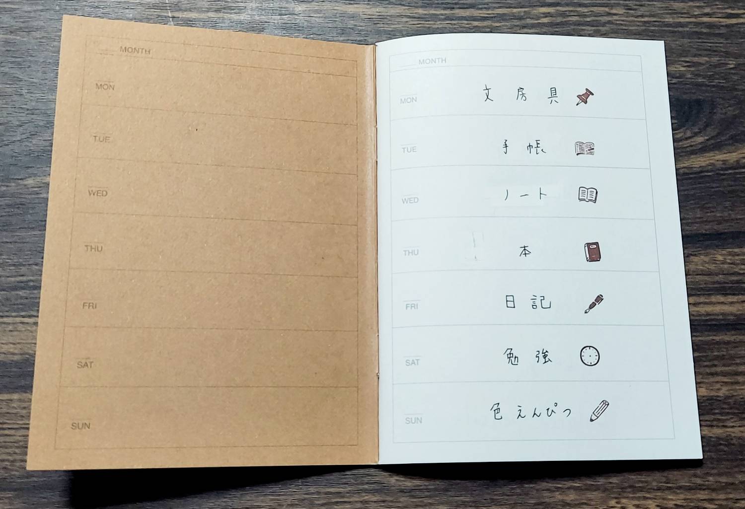 無印良品のウィークリーノートに日本語書いて、裏に英語のスペルを書く❗