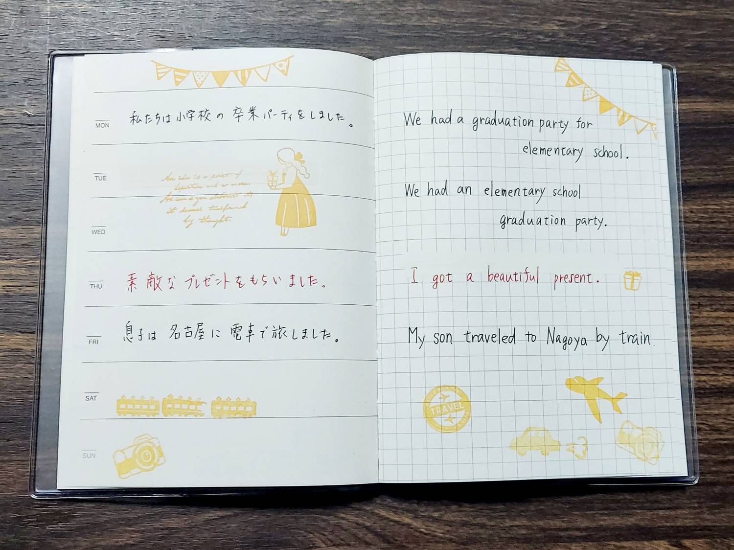 コラージュが好きな娘なので、スタンプやシールでコラージュすれば、英語が好きになってくれるのではと早速ウィークリーのノートを買い足しました❗